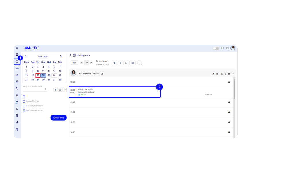 1. No menu lateral esquerdo, clique em Agenda (ícone de calendário).