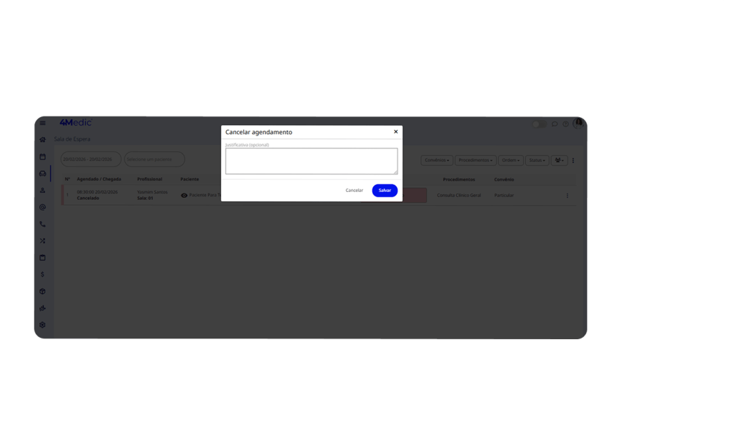 Neste tutorial, você aprenderá como cancelar um agendamento na plataforma 4Medic.