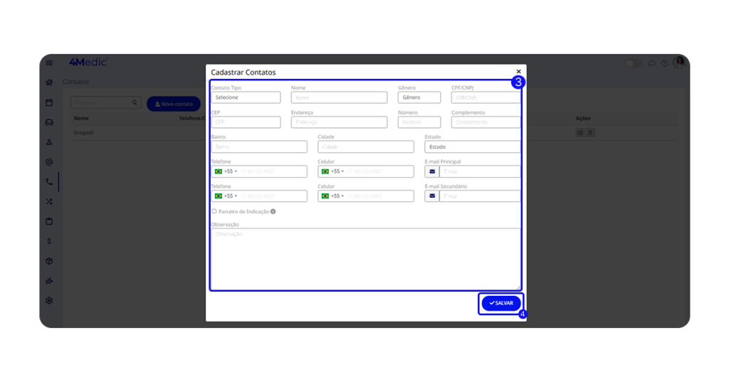Neste tutorial, você aprenderá como cadastrar e utilizar contatos no sistema 4Medic.