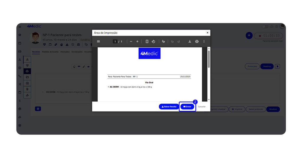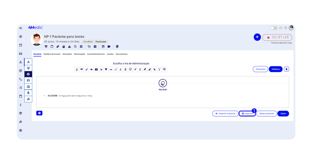 1. Com a receita do paciente pronta, clique em Imprimir ou Imprimir e Assinar.