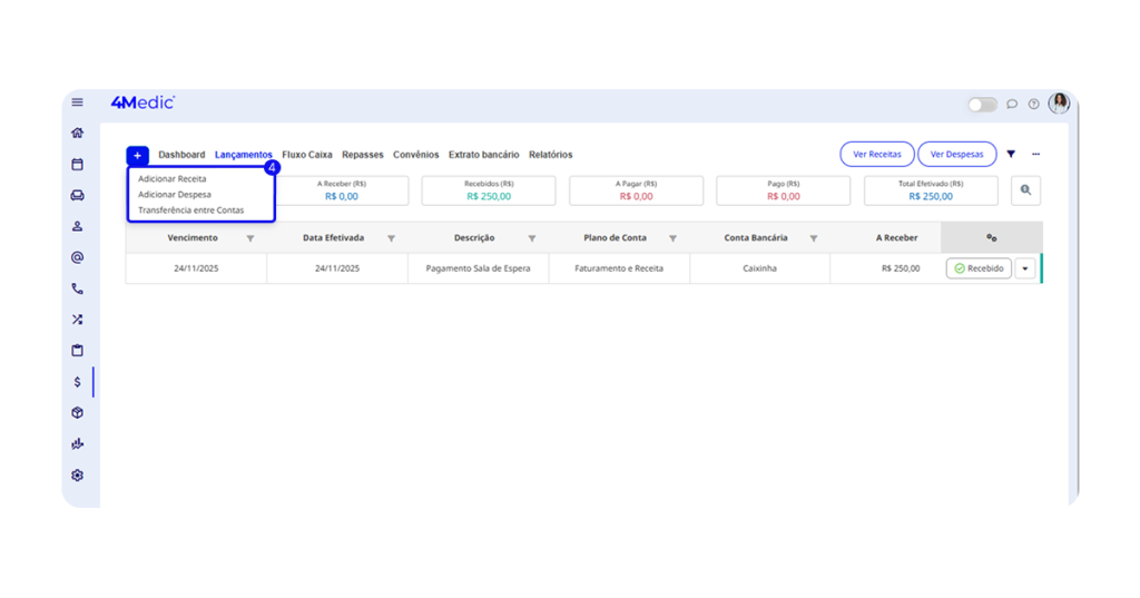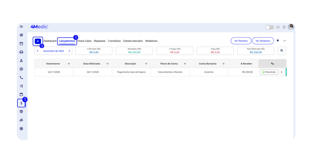 3. Clique no ícone de “+” para adicionar um novo lançamento.