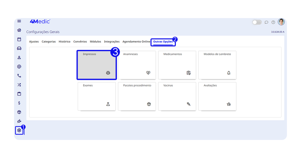 - No menu lateral esquerdo, clique em Configurações (ícone de engrenagem ⚙️).