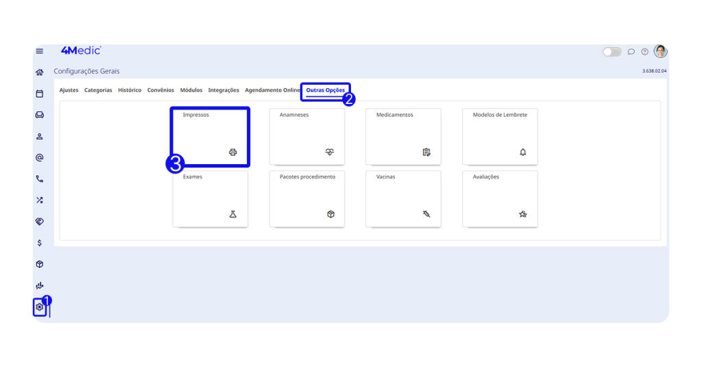 - No menu lateral esquerdo, clique em Configurações (ícone de engrenagem ⚙️).