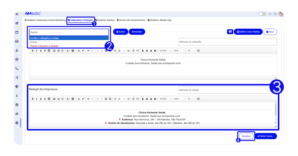 1. Acessando os modelos de Cabeçalho e Rodapé