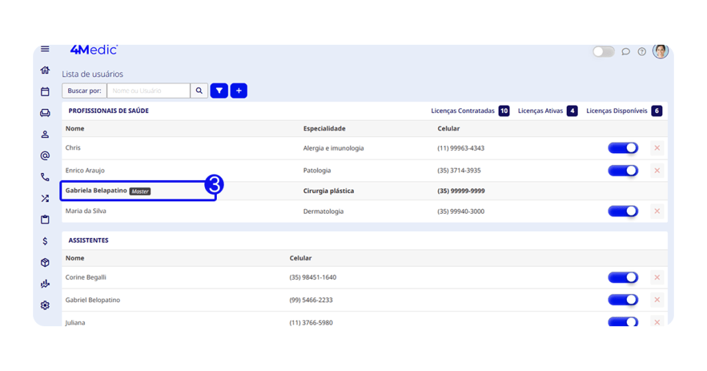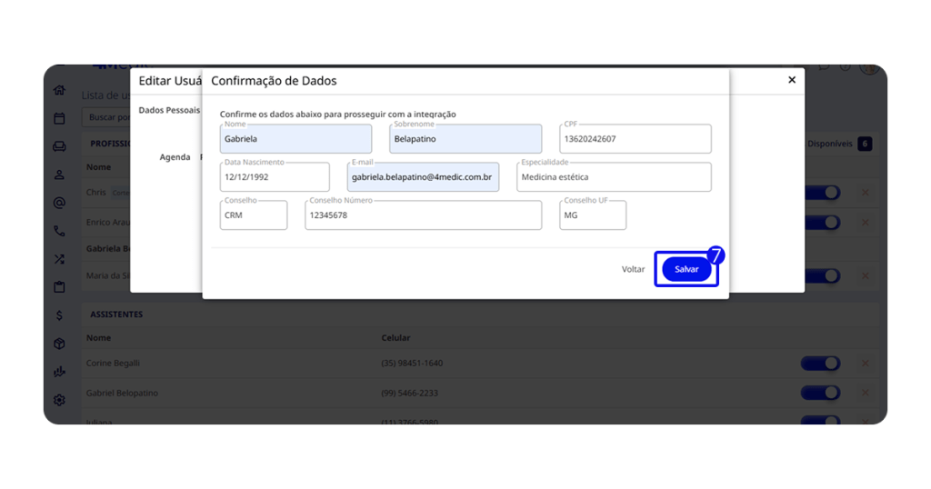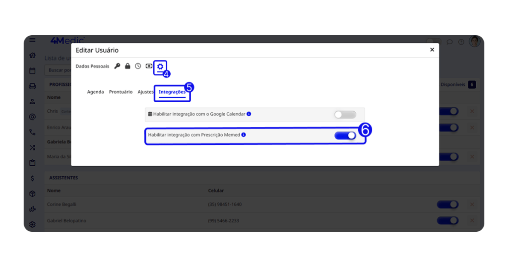 3. Clique sobre o profissional que deseja habilitar a integração.