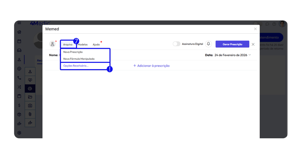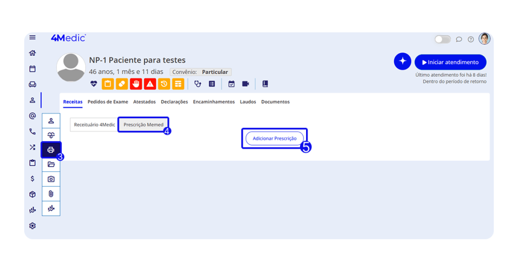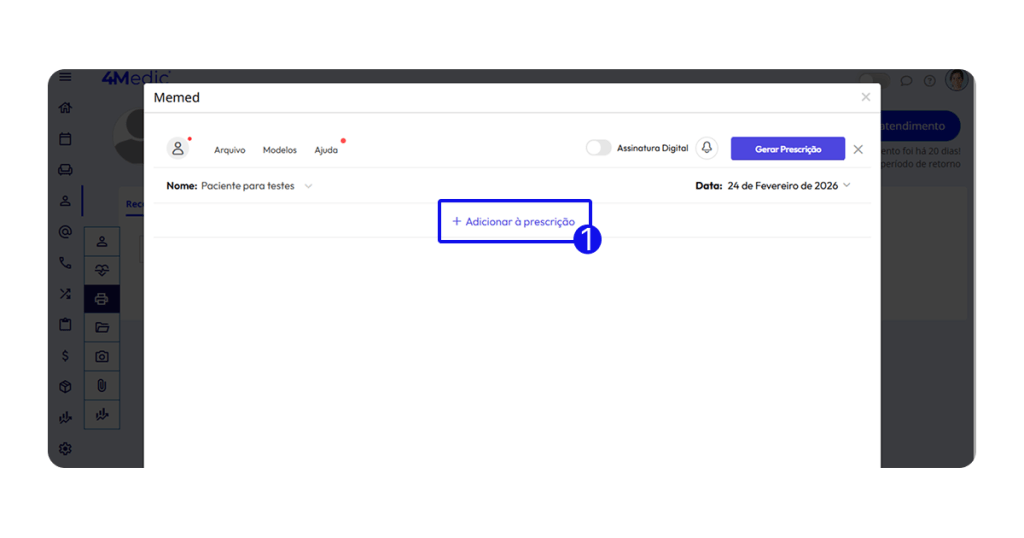 Neste tutorial, você aprenderá como integrar e utilizar a prescrição digital pela Memed, aproveitando todos os recursos disponíveis diretamente no prontuário do paciente.
