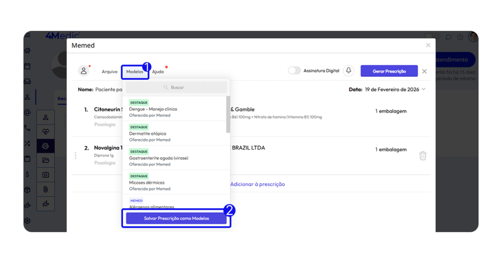 2. Salvar Prescrição como Modelos.