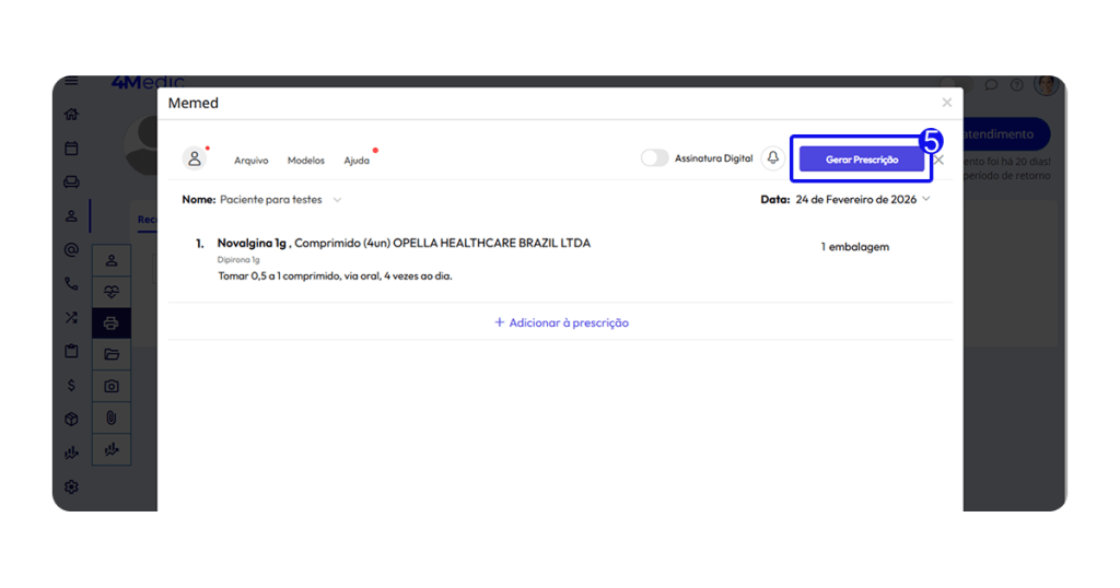 5. Após personalizar a receita de seu paciente, clique em Gerar prescrição.