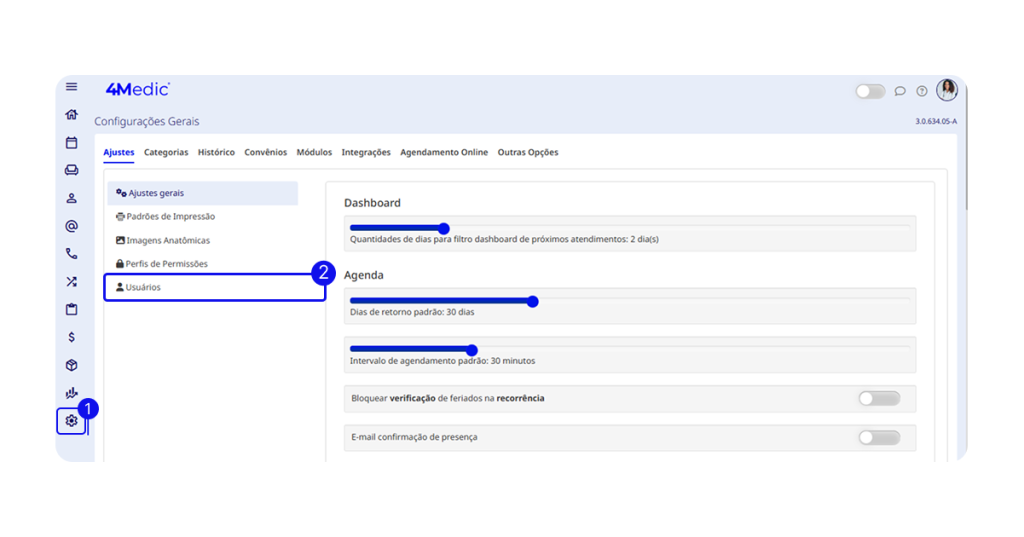 1. No menu lateral esquerdo, clique em Configurações (ícone de engrenagem ⚙️).
