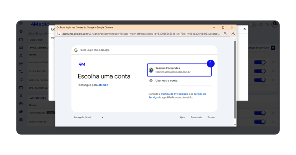 1. Após salvar, uma nova janela será aberta, selecione a conta do Google desejada.