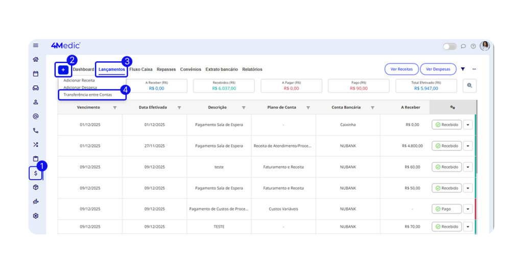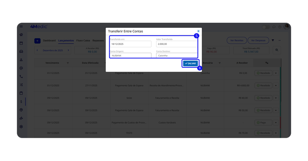 Neste tutorial, você aprenderá a registrar uma transferência entre contas bancárias dentro do sistema, garantindo que todas as movimentações financeiras sejam documentadas corretamente.