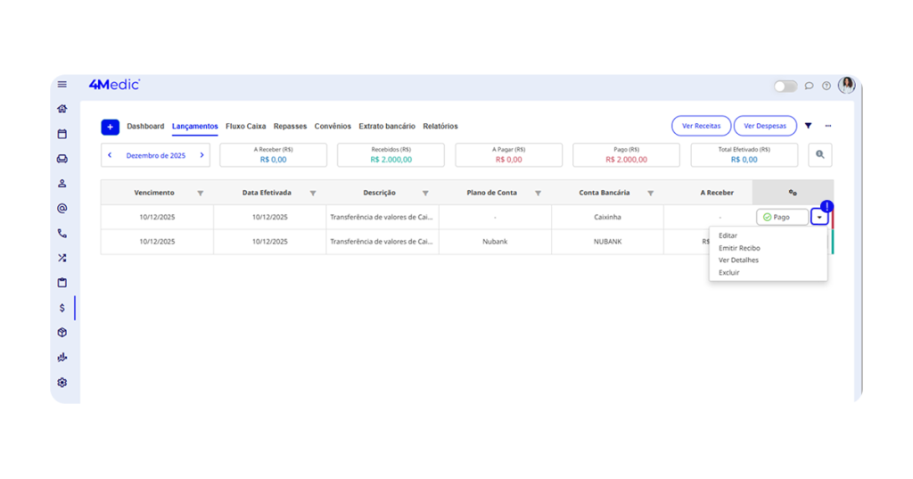 - Editar: Altere as informações da transferência;