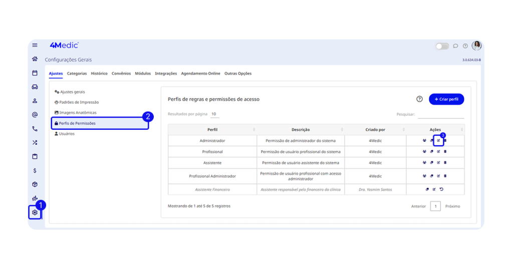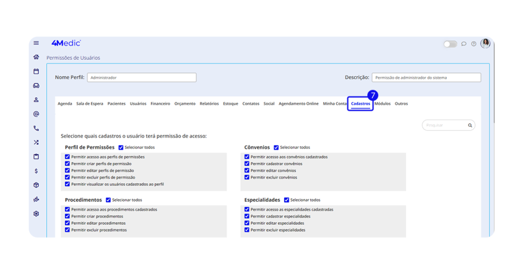 Repita o mesmo processo para os demais perfis caso queira liberar para outros usuários o acesso as novas funcionalidades e configurações.