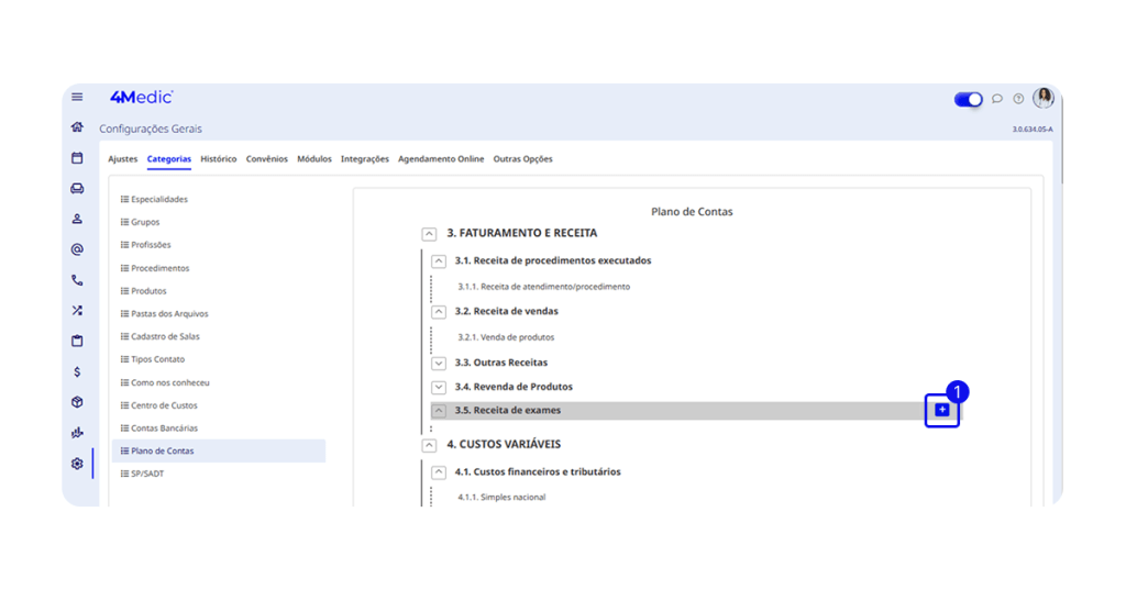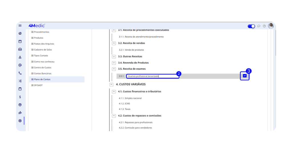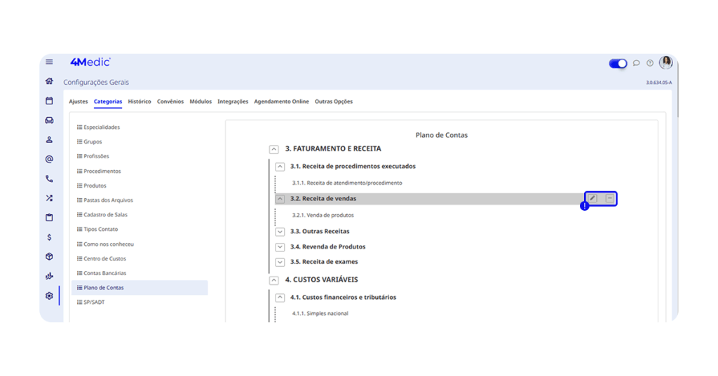 • Plano de Contas: 3.1 Receita de procedimentos executados