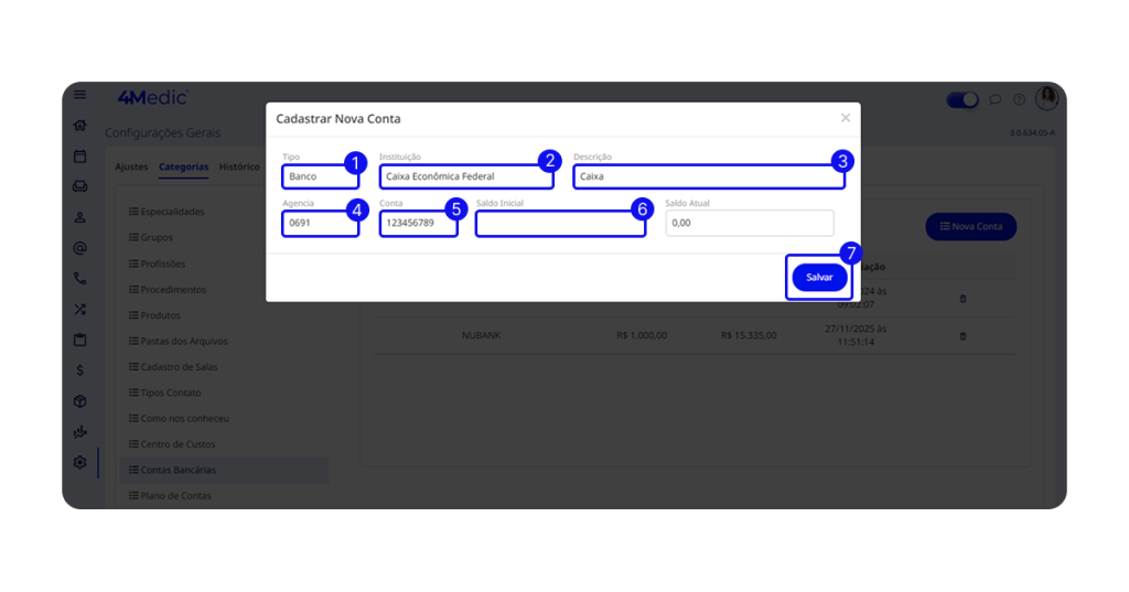 4.1. Como cadastrar uma conta bancária