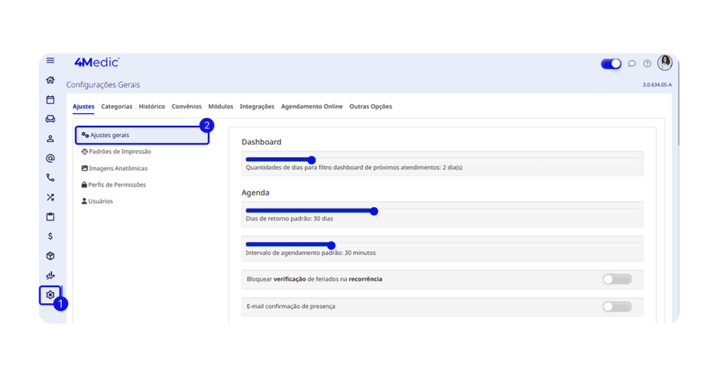 2. Clique em Ajustes Gerais.