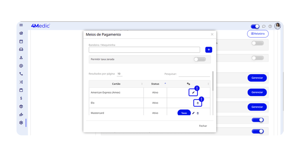 5.4. Editar ou excluir taxas