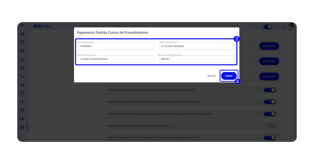 Essa configuração é opcional e deve ser utilizada conforme a realidade da gestão financeira da clínica.
