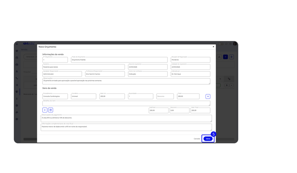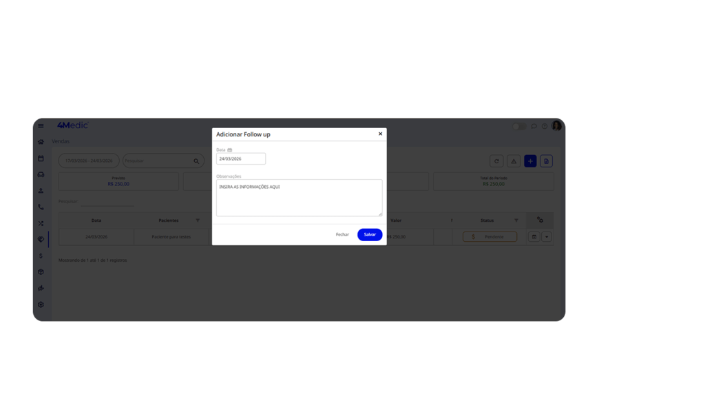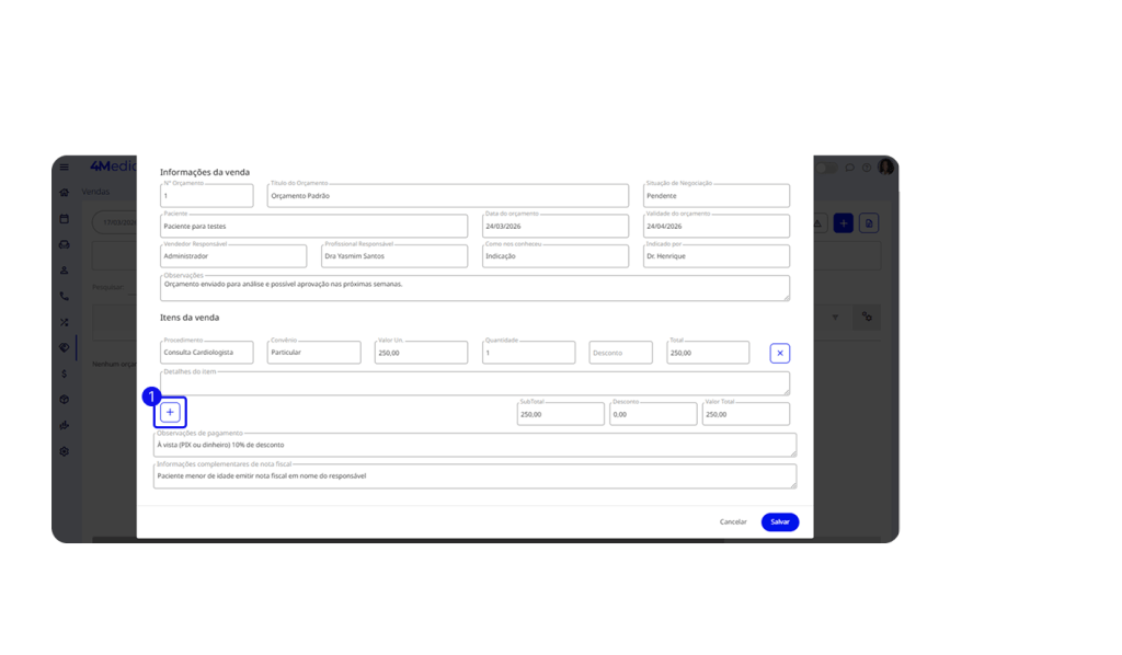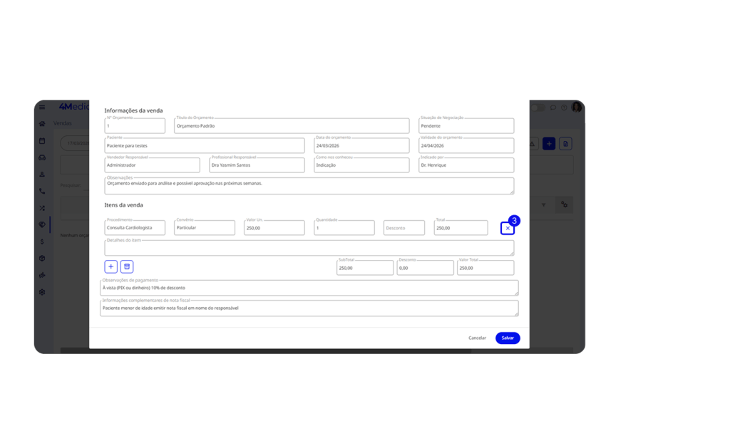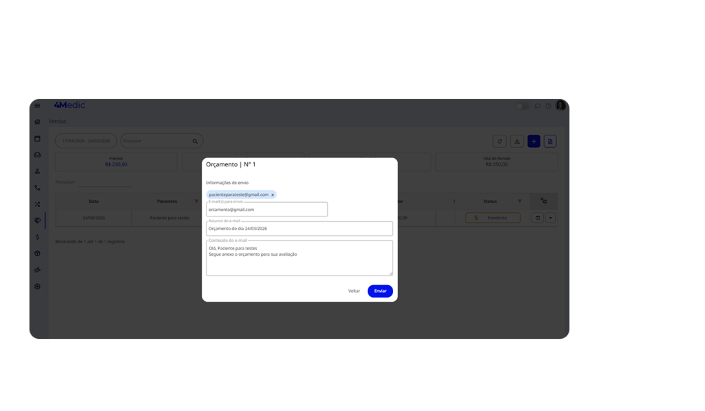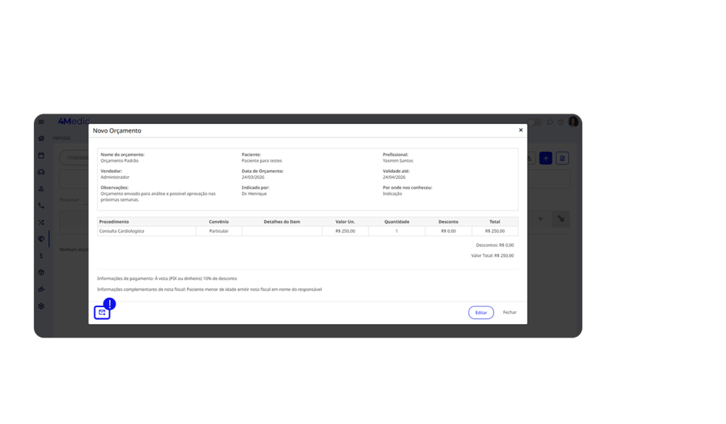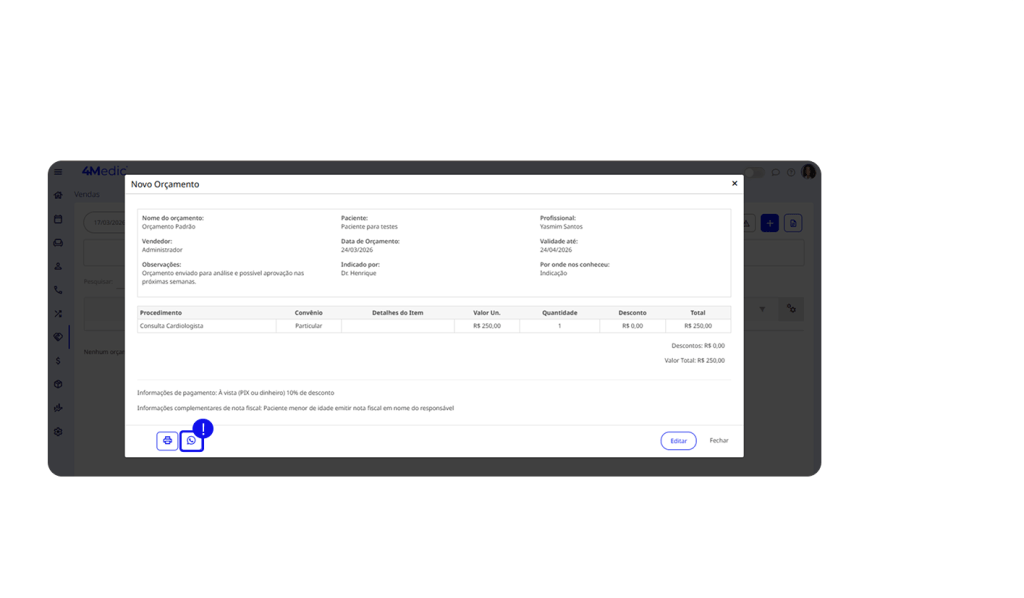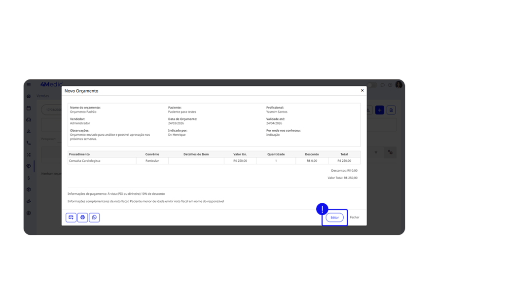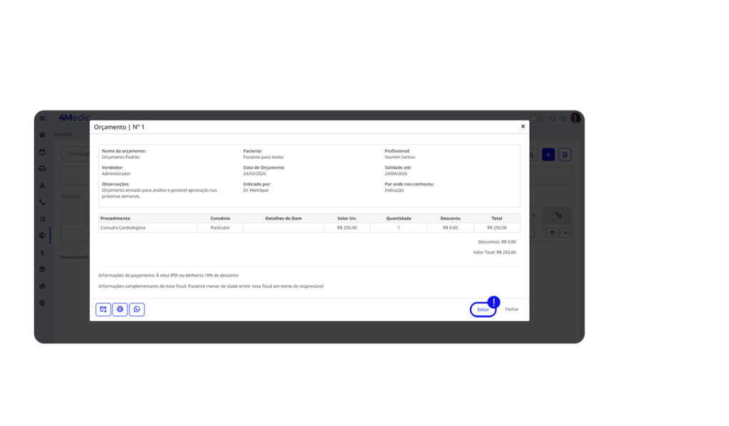 Após criar um orçamento, é fundamental entrar em contato com o paciente para avançar no fechamento da proposta. Manter esse acompanhamento ativo evita que a negociação esfrie e aumenta as chances de conversão.