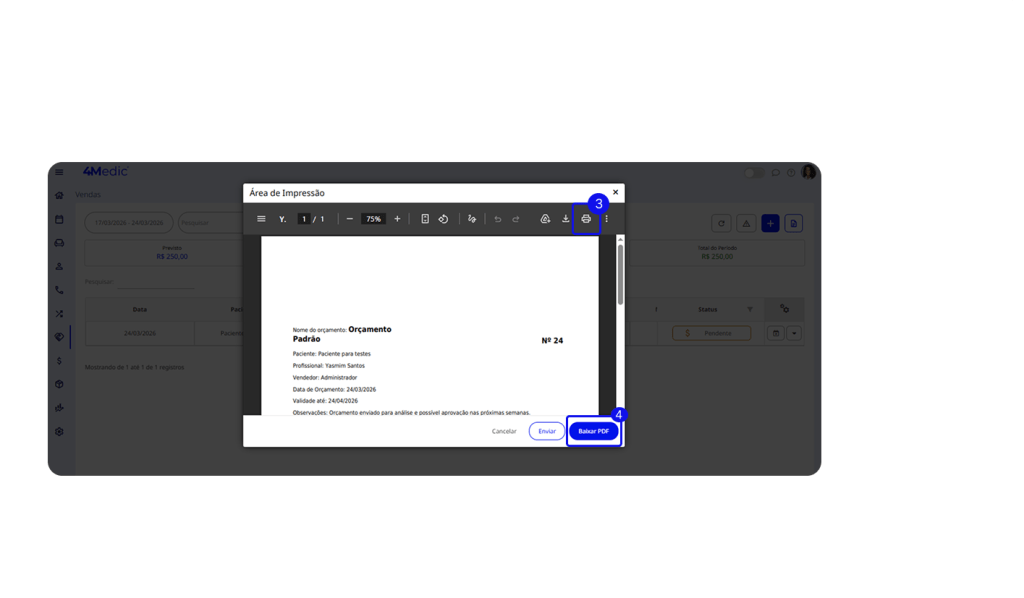 4. Se preferir, também é possível baixar o orçamento em PDF.