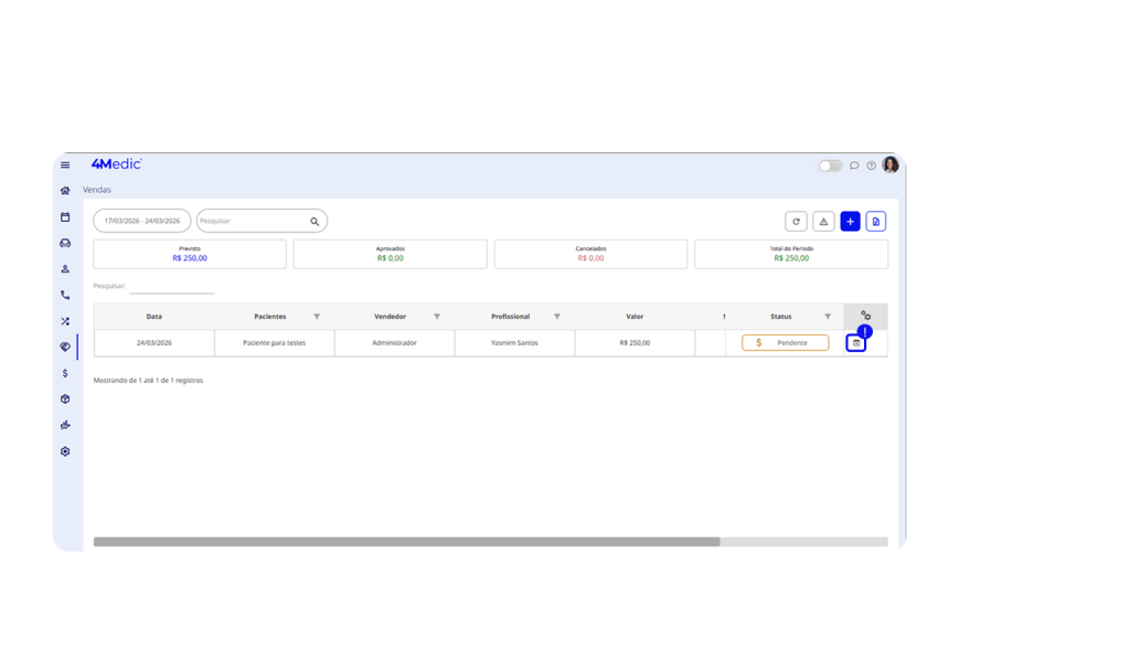 O Módulo de Vendas é um recurso adicional pago à parte, disponível para o Plano Essencial. Caso sua clínica ainda não tenha contratado esse módulo e deseje utilizá-lo, entre em contato com nossa equipe através do link para contratação.