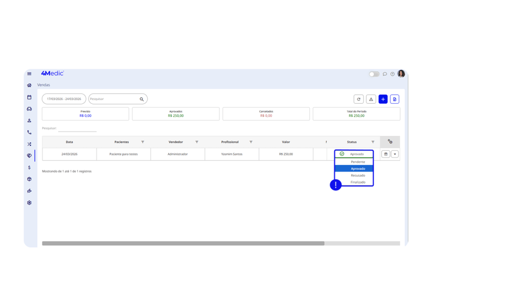 Caso o paciente decida prosseguir ou não com a proposta, não se esqueça de alterar o status do orçamento.