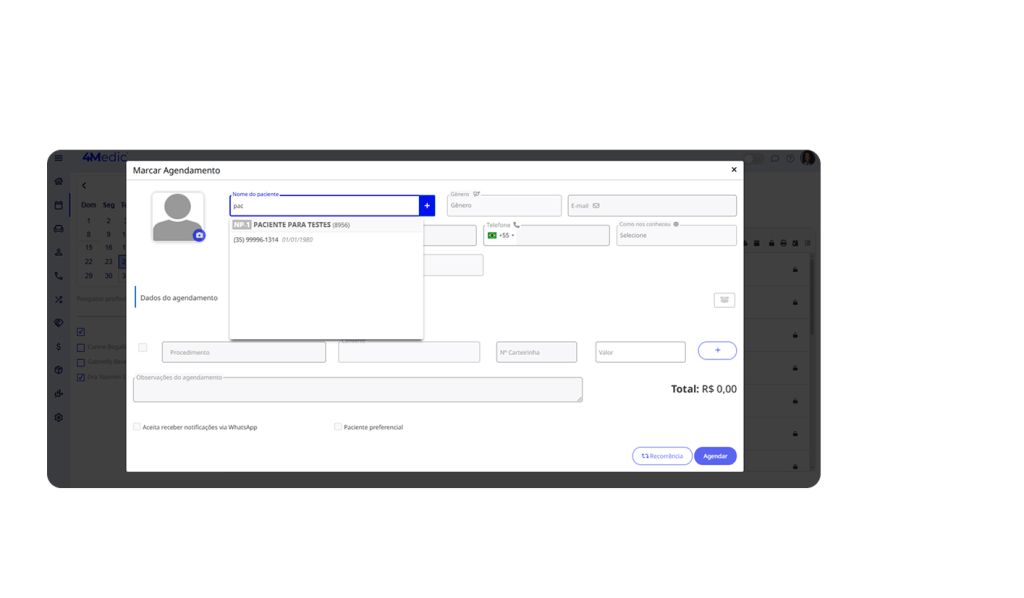 💡 Dica: Para não esquecer de retornar ao paciente, utilize a ferramenta de lembretes disponível na tela inicial.