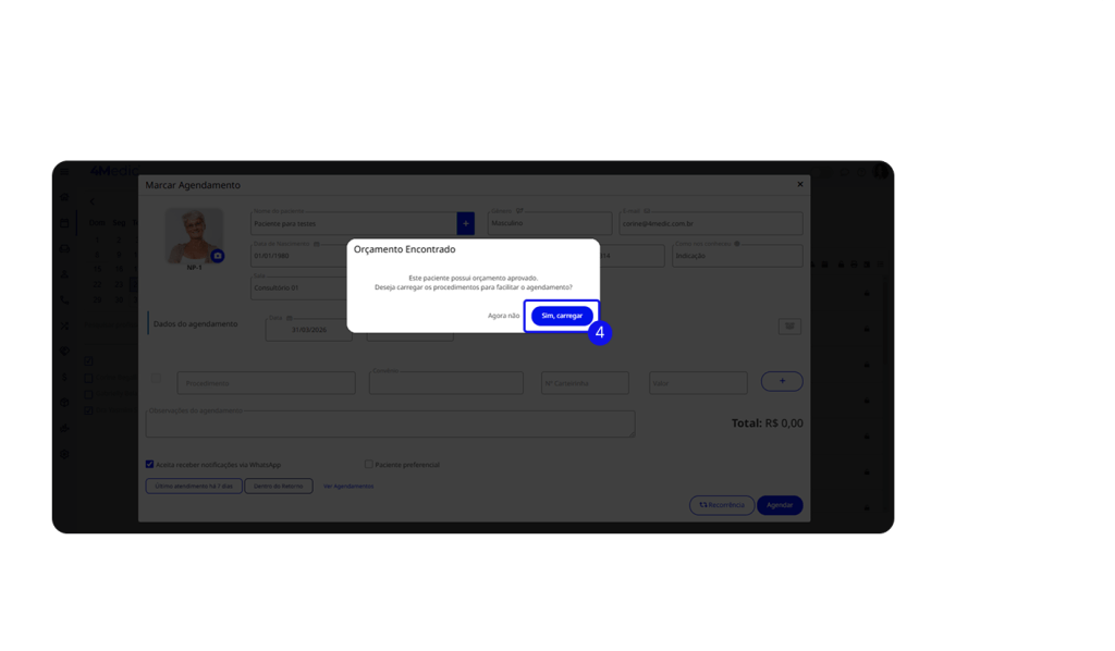 3. Selecione o paciente que possui o orçamento aprovado.