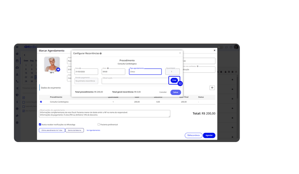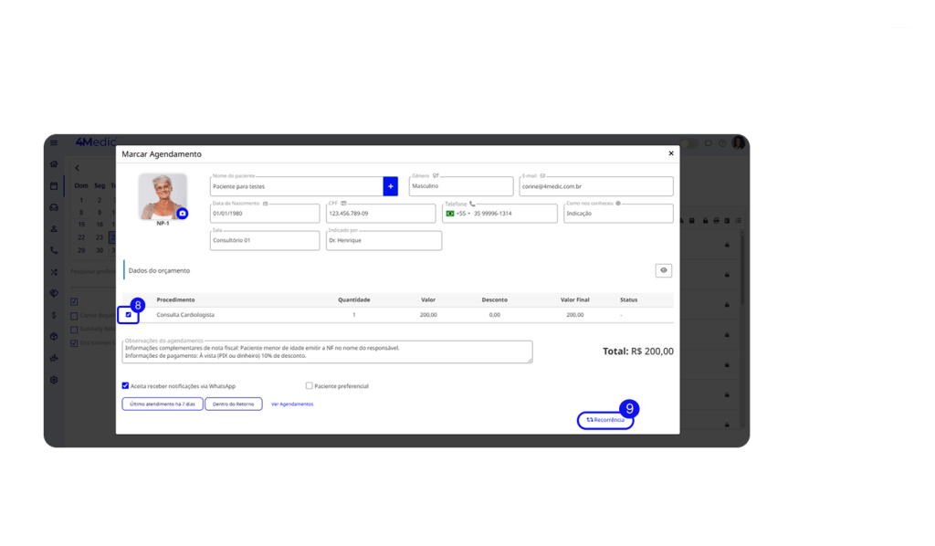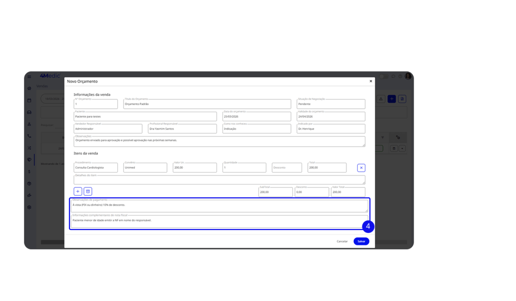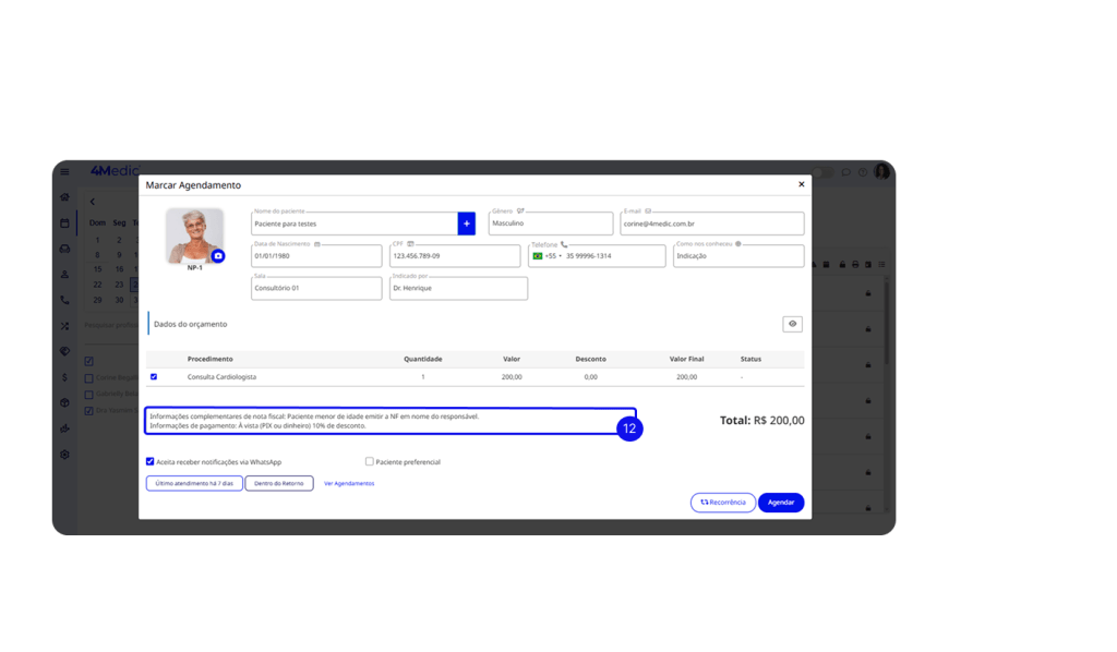 12. As informações de pagamento e Nota Fiscal incluídas no ato do orçamento, ficam disponíveis para visualização na Agenda e na Sala de Espera quando o orçamento for agendado.