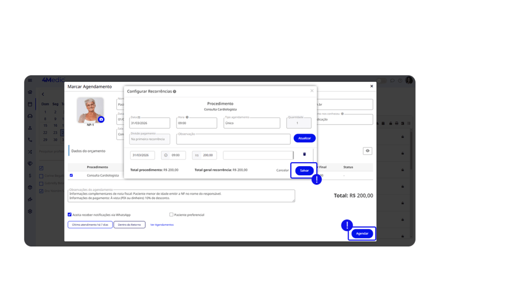 11. Clique em Salvar para finalizar o agendamento e por ultimo em Agendar.