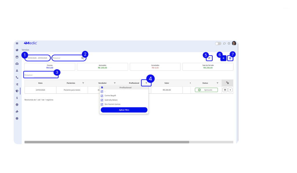 - Total do período: resultado entre aprovados e cancelados.