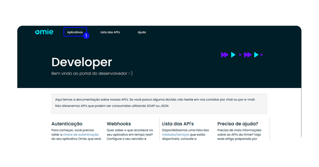 1. Ao acessar o Omie – Developer, acesse a aba Aplicativos.