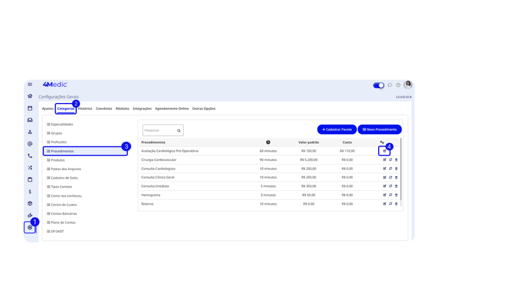 Observação: Todos os lançamentos financeiros feitos na 4Medic em Financeiro ou Estoque devem ser vinculados a uma categoria correspondente cadastrada no OMIE, garantindo o envio correto das informações entre as plataformas.