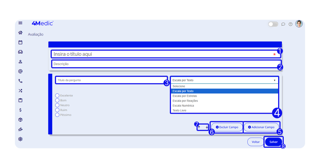 3. Insira um Título da pergunta. (O que deseja perguntar ao paciente)