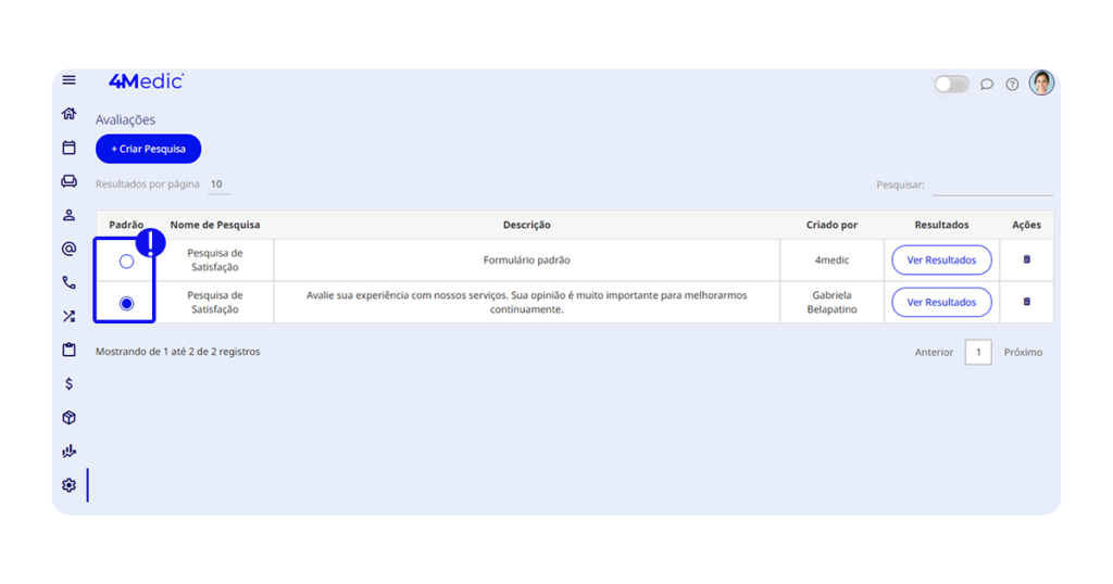 Com esse processo simples, você consegue criar, enviar e analisar pesquisas de satisfação, garantindo um acompanhamento contínuo da experiência dos seus pacientes e a melhoria constante do atendimento.