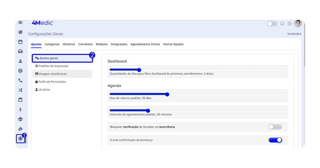 1. No menu lateral, clique em Configurações (ícone de engrenagem).