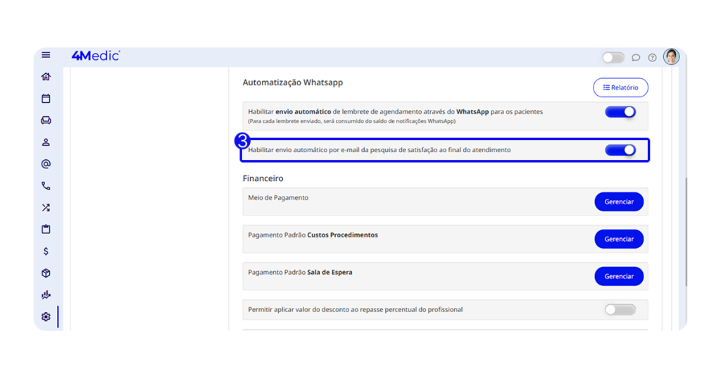 Neste tutorial, você aprenderá como personalizar sua pesquisa de satisfação e enviar automaticamente ao finalizar o atendimento — garantindo um retorno prático dos pacientes e auxiliando na avaliação da qualidade dos seus serviços.