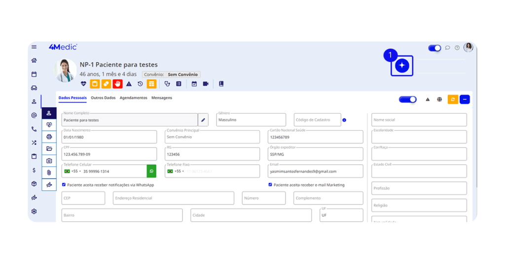 1. No canto superior direito, clique no ícone do 4Medic IA (⭐ ícone de estrela).