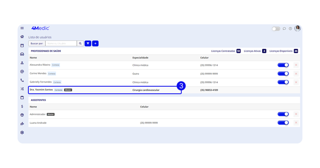 3. Selecione o usuário para o qual deseja habilitar o alerta