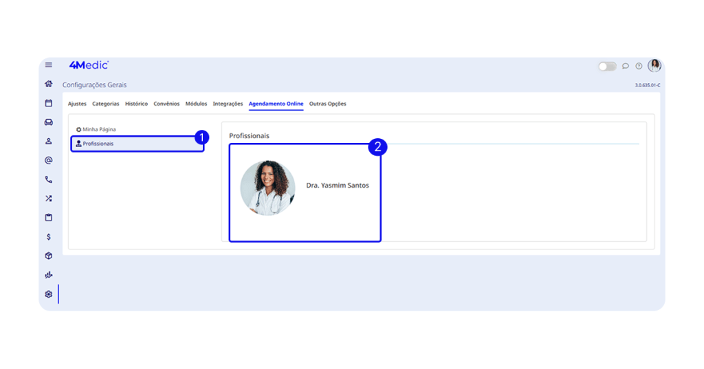 2. Clique sobre o profissional desejado para editar suas configurações.