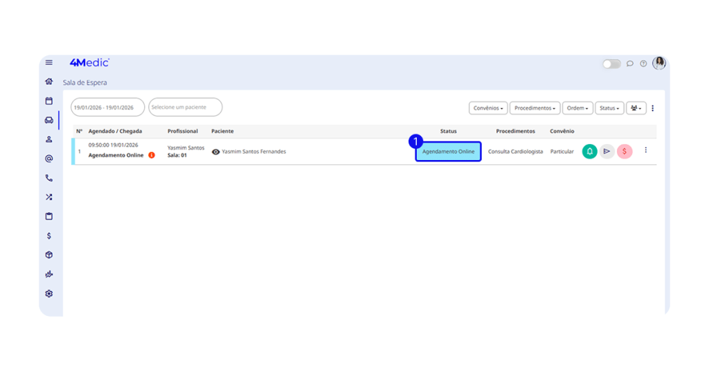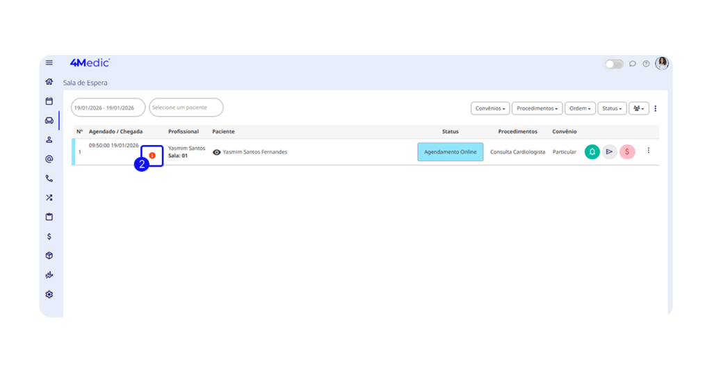 1. Para visualizar todos os agendamentos online futuros na Agenda, clique no ícone vermelho localizado no topo da agenda.