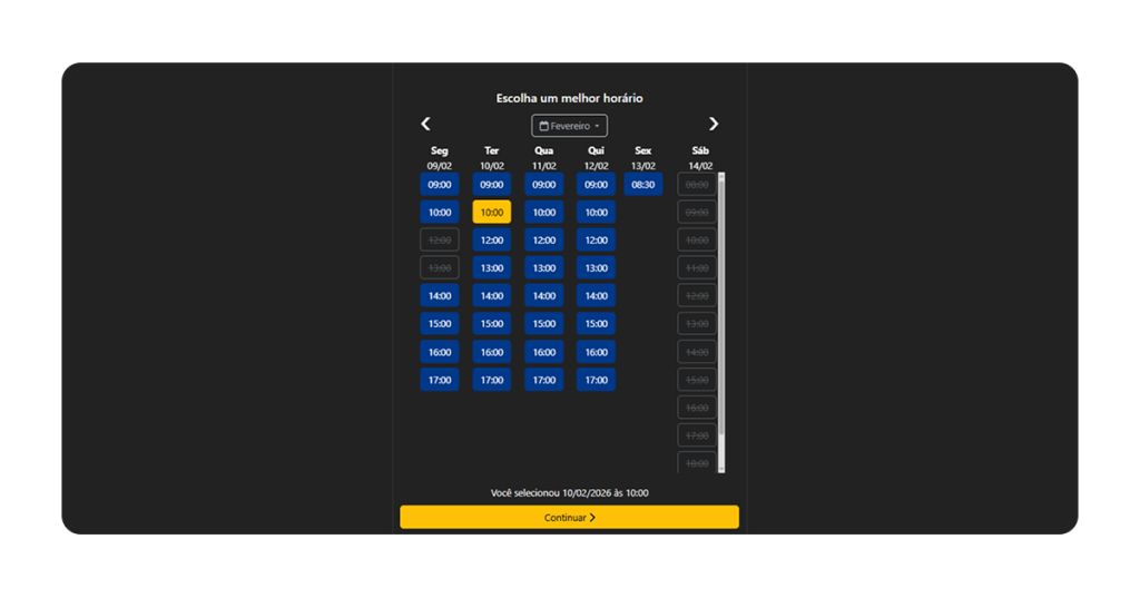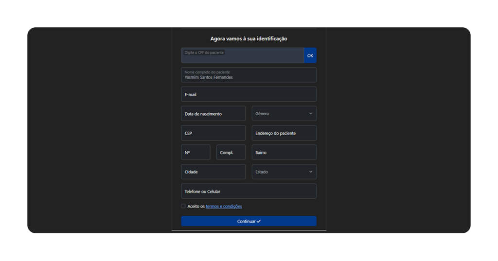 Ao acessar o link de agendamento online, o paciente seguirá os seguintes passos: