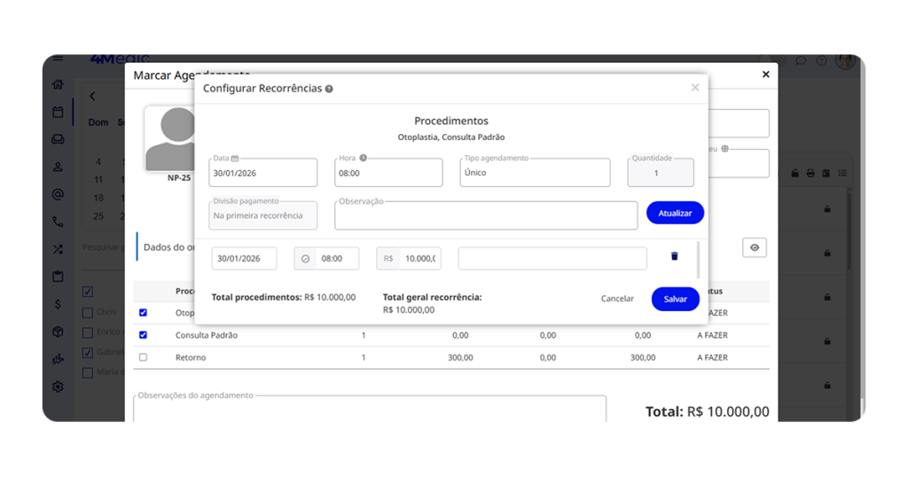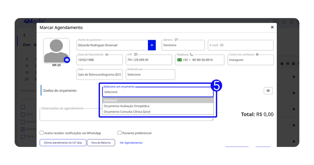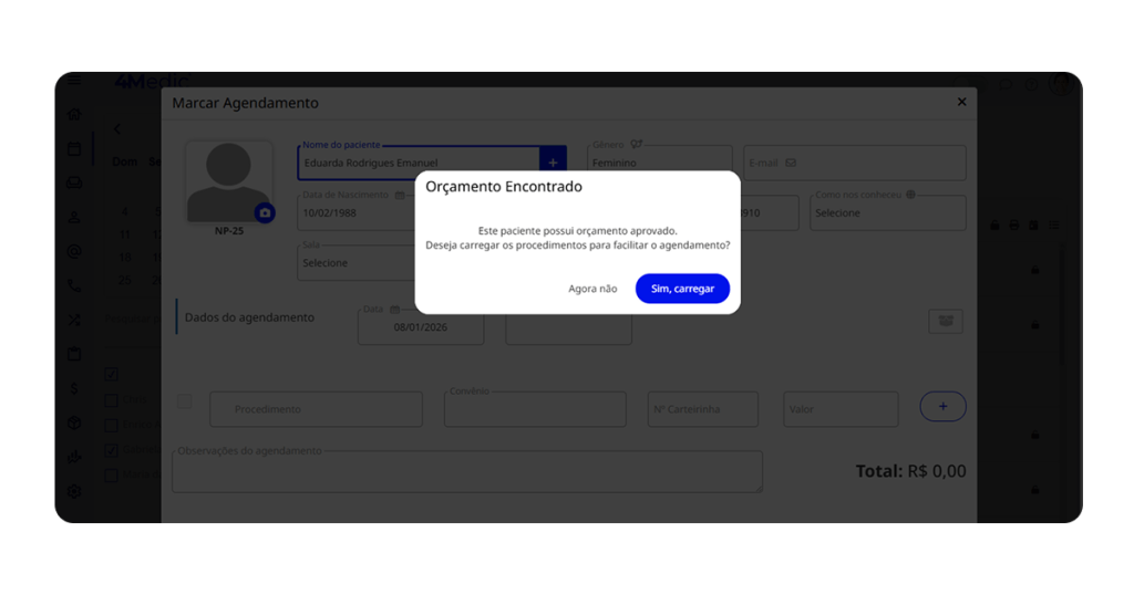 3. Ao selecionar o paciente, o sistema informará que ele possui um orçamento aprovado.