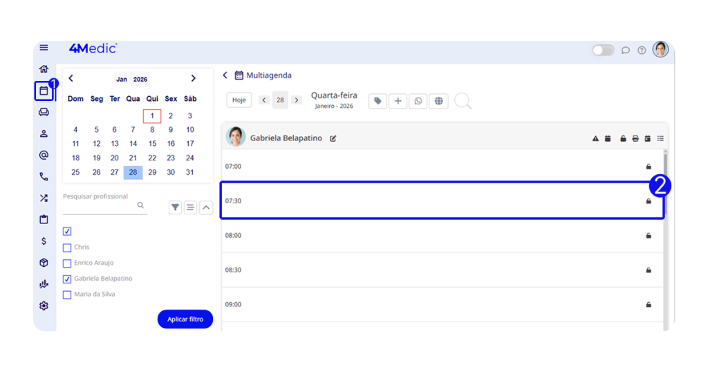 1. No menu lateral esquerdo, acesse a Multiagenda 🗓️.