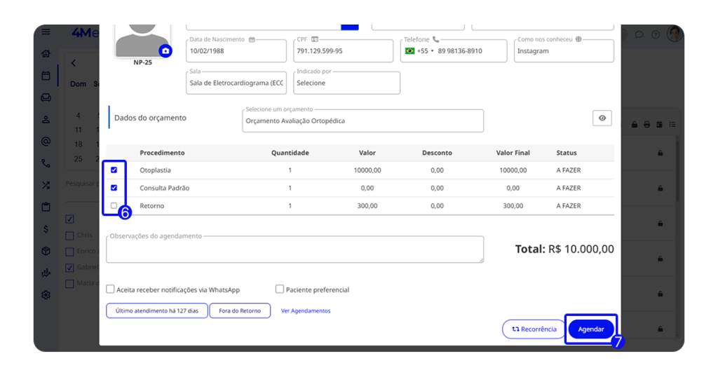 6. Selecione os procedimentos clicando na caixinha ao lado esquerdo