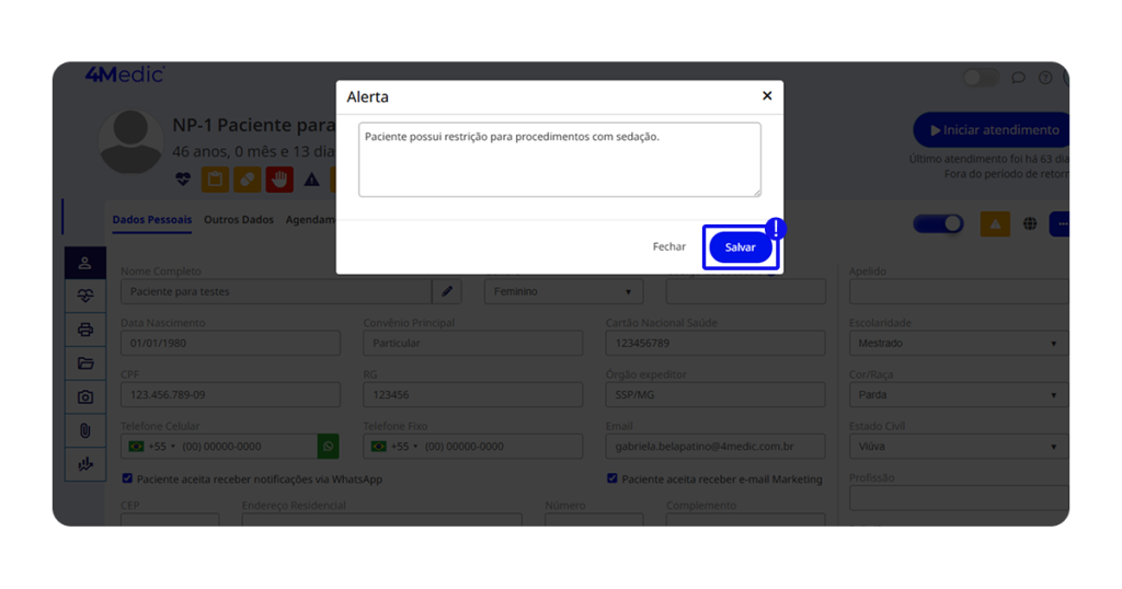 Com esse processo simples, você consegue registrar alertas importantes no prontuário do paciente, garantindo mais segurança, organização e agilidade no atendimento. Sempre que necessário, atualize essas informações para manter o prontuário completo e confiável.