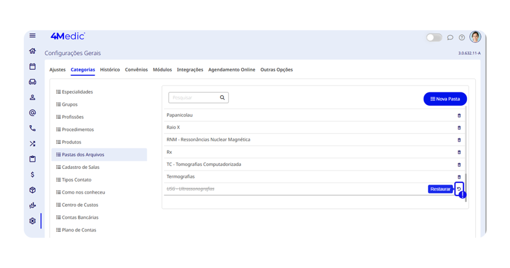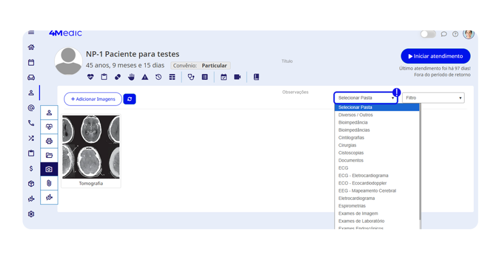 - Selecionar Pastas: exames de imagem, mamografia, eletrocardiograma, entre outros.