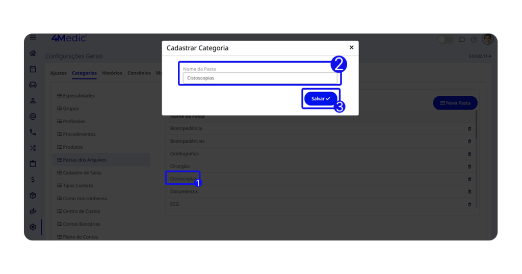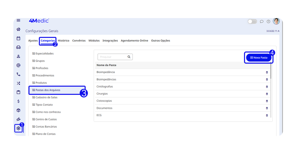 - Clique em Categorias e depois em Pastas dos arquivos.