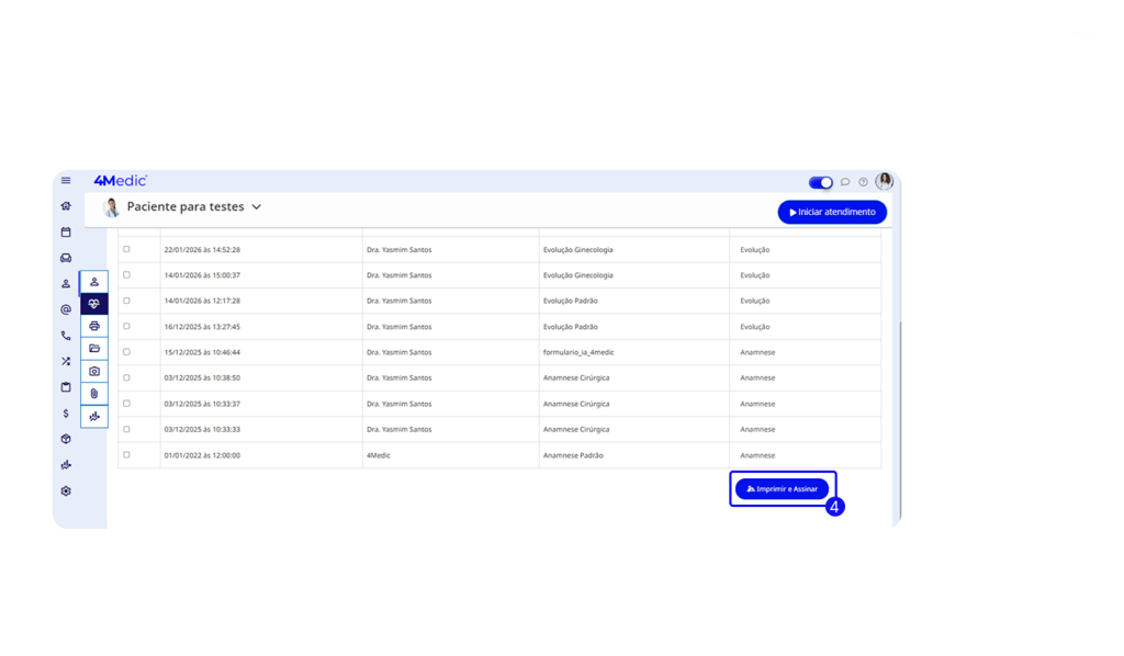 Também é possível assinar digitalmente anamneses e evoluções de forma individual ou conjunta.