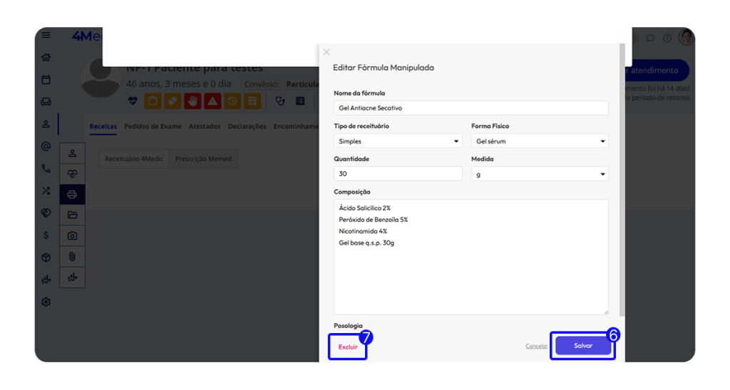 7. Caso deseje excluir o medicamento, clique em Excluir.